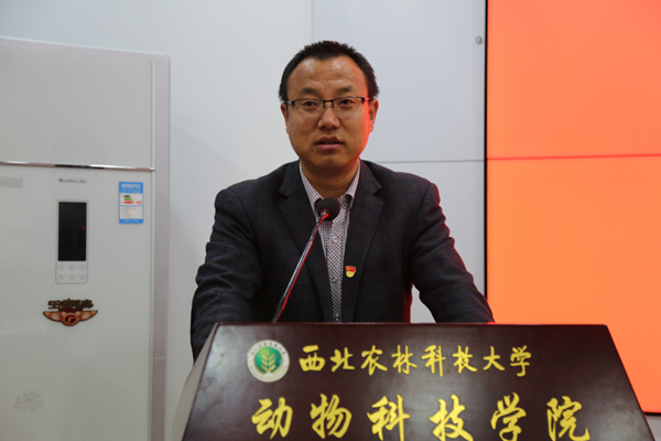 宁县畜牧兽医局李世阳局长讲话,他说学员们能来到国家重点农业大学学习深造机会难得,感谢学院为本次培训做出的努力,要求学员们在为期半个月的培训学习中加强纪律,认真听讲,对杨凌示范区高新农业园区深入考察了解,学以致用,为宁县的贫困村创业致富真正起到创业致富带头人作用。