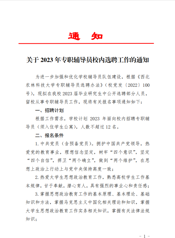 » 转发:关于2023年专职辅导员校内选聘工作的通知