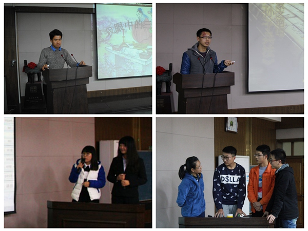 书评环节中,草业152班张钰婧同学声情并茂的讲述了《追风筝的人》里令人唏嘘的爱恨情仇,更播放同名电影片段让在座观众对故事情节感同身受;草业142班的任笑天同学借用著名评书家单田芳先生的评书以自己独特视角讲述了不一样的《三国演义》,新鲜的讲解让人眼前一亮。动科153班的刘志超同学伴着对《百年孤独》优美动听的钢琴伴奏舌灿莲花,妙语连珠,带领观众走进了《百年孤独》的魔幻现实世界,充分表现他对该书的深刻理解。水产151班肖宇同学则已几个经典兵法为例,精彩演讲表达她对《孙子兵法》独到的见解;草业141班的臧琳同学结合经典影片《夜宴》、《狮子王》,为大家讲述了哈姆雷特这一戏剧化的的悲剧人生,向同学们阐述了人生真正的意义与价值,赢得了全场观众及评委的一致认可。十支队伍轮番登场,精彩的内容和饱满的情感引起了观众们的阵阵掌声。