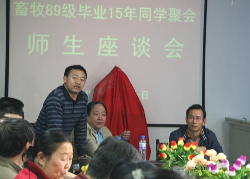 主持人来自我校科技推广处的吴锋副处长,作为畜牧89级的一员,面对大家动情的发言激动的说,“毕业15年,不管我们从事什么行业,在什么岗位,在西北农林科技大学形成的优秀品质使我们在各自的工作岗位中取得了一定的成绩,母校对于我们的教诲是影响终身的,感谢恩师的谆谆教诲!我们一定恪尽职守,努力奋斗,在自己的岗位上奉献社会,不愧于做一名西农人。”