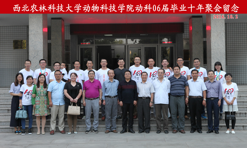 10月2日下午,动物科学专业2006届校友在学院104会议室举行了毕业10年聚会师生座谈会。校友会副秘书长张红亮,学院党委书记赵延安、副院长昝林森、孙超、王力及原任课教师代表、辅导员、班主任分别参加了座谈会。