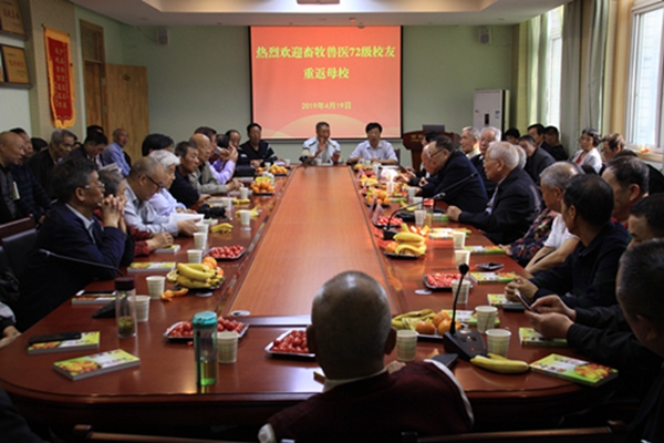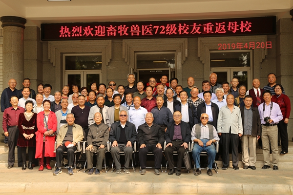 草长莺飞,姹紫嫣红,最美人间四月天,动物科技学院、动物医学院迎来一大盛事——畜牧兽医72级五十余位校友毕业44年后相聚西农。原任课教师王强华、崔中林、贺普霄、曹光荣、马章全、雷天富,动物科技学院党委书记曹军会、动物医学院副院长杨增岐,畜牧兽医72级校友60余人相聚一堂,共叙难忘师生情。