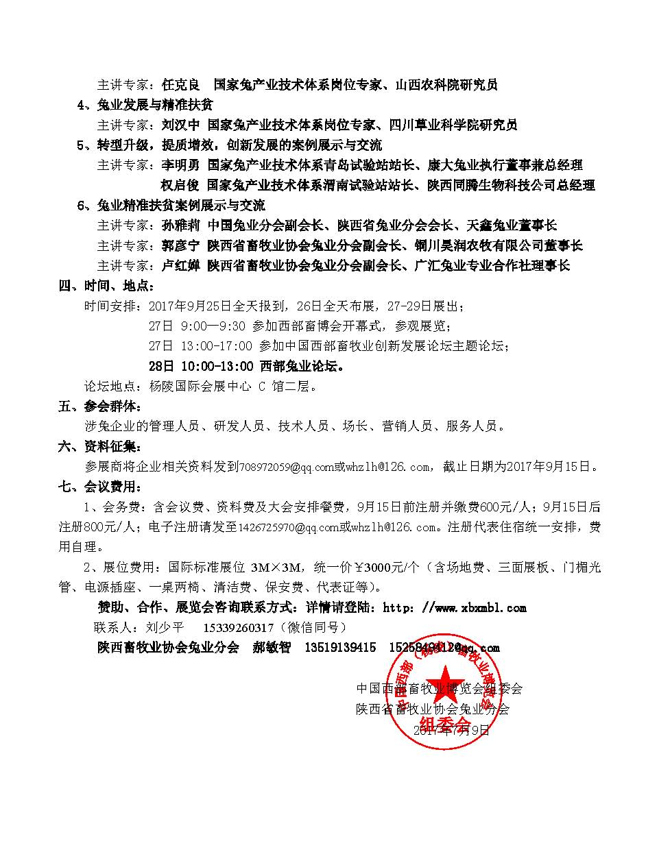 关于举办“2017中国西部畜牧业博览会兔业专题展与兔业创新发展论坛”的邀请函(第二轮)
